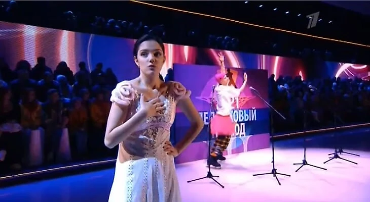 Главным событием первого выпуска была, пожалуй, встреча Загитовой и Медведевой. Женя уже бывала на проекте, но только в детской версии и в другом качестве – тоже ведущей.