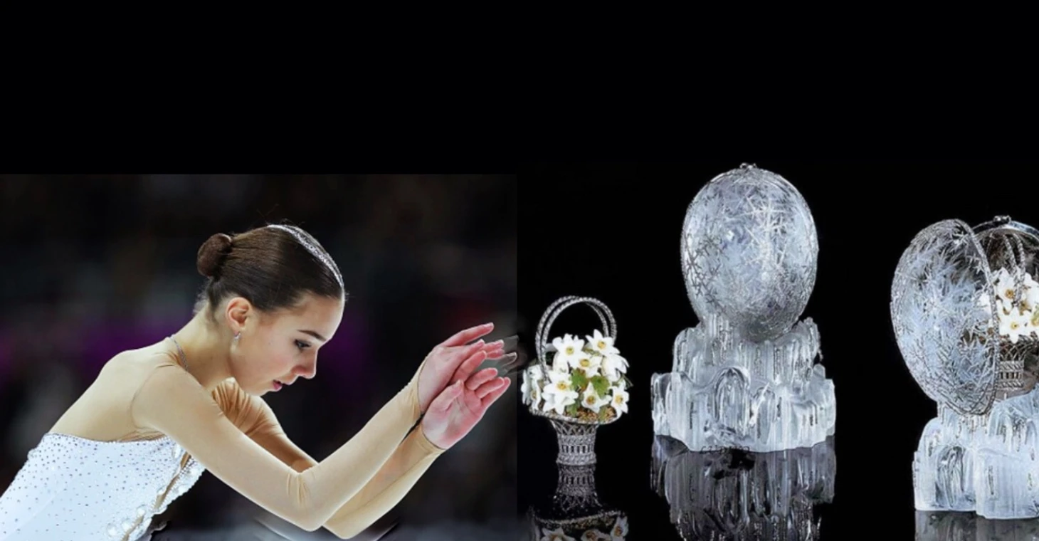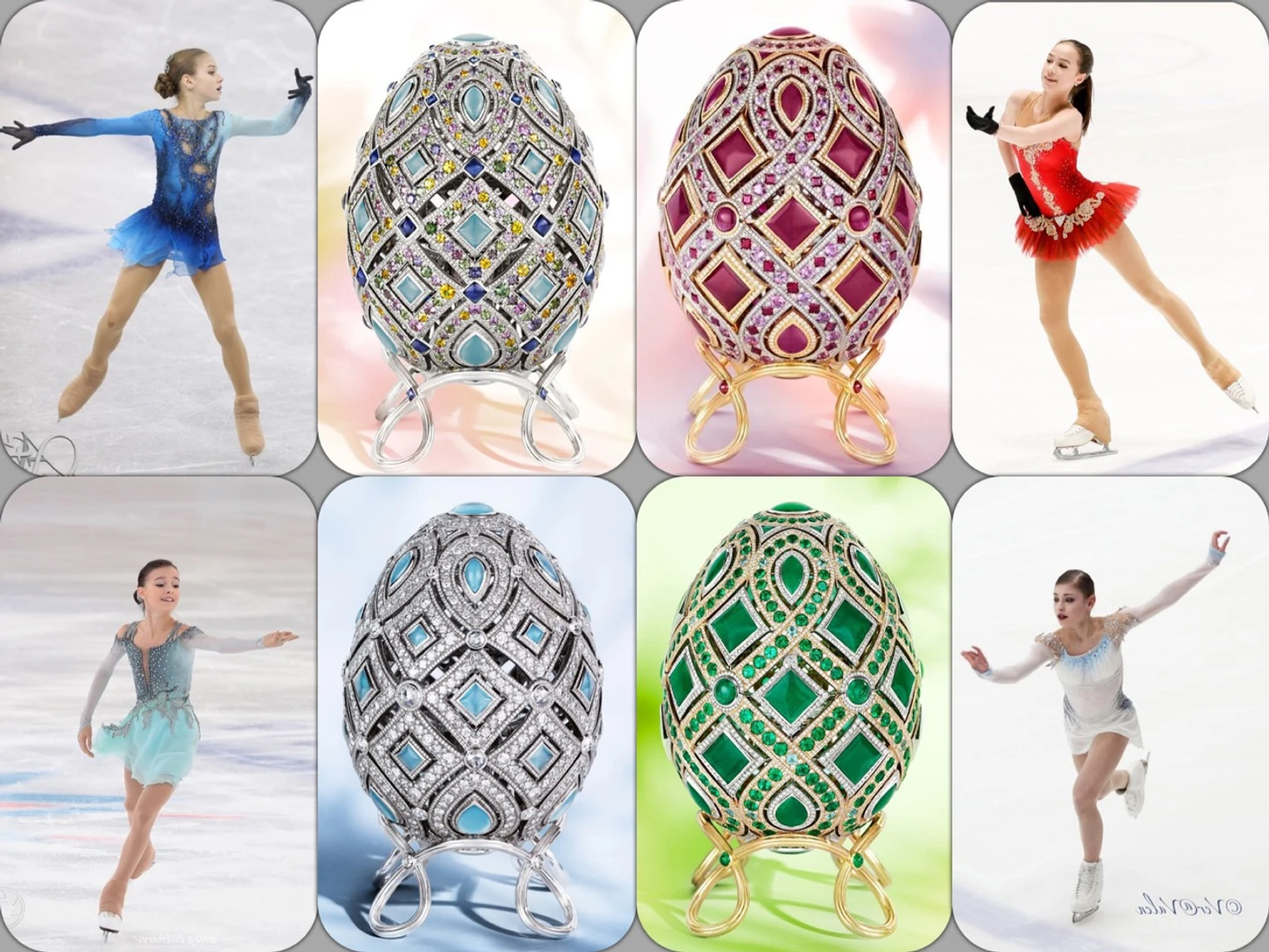 Александра Трусова, яйцо «Лето»; Алина Загитова, яйцо «Осень»; Анна Щербакова, яйцо «Зима», Алена Косторная, яйцо «Весна»