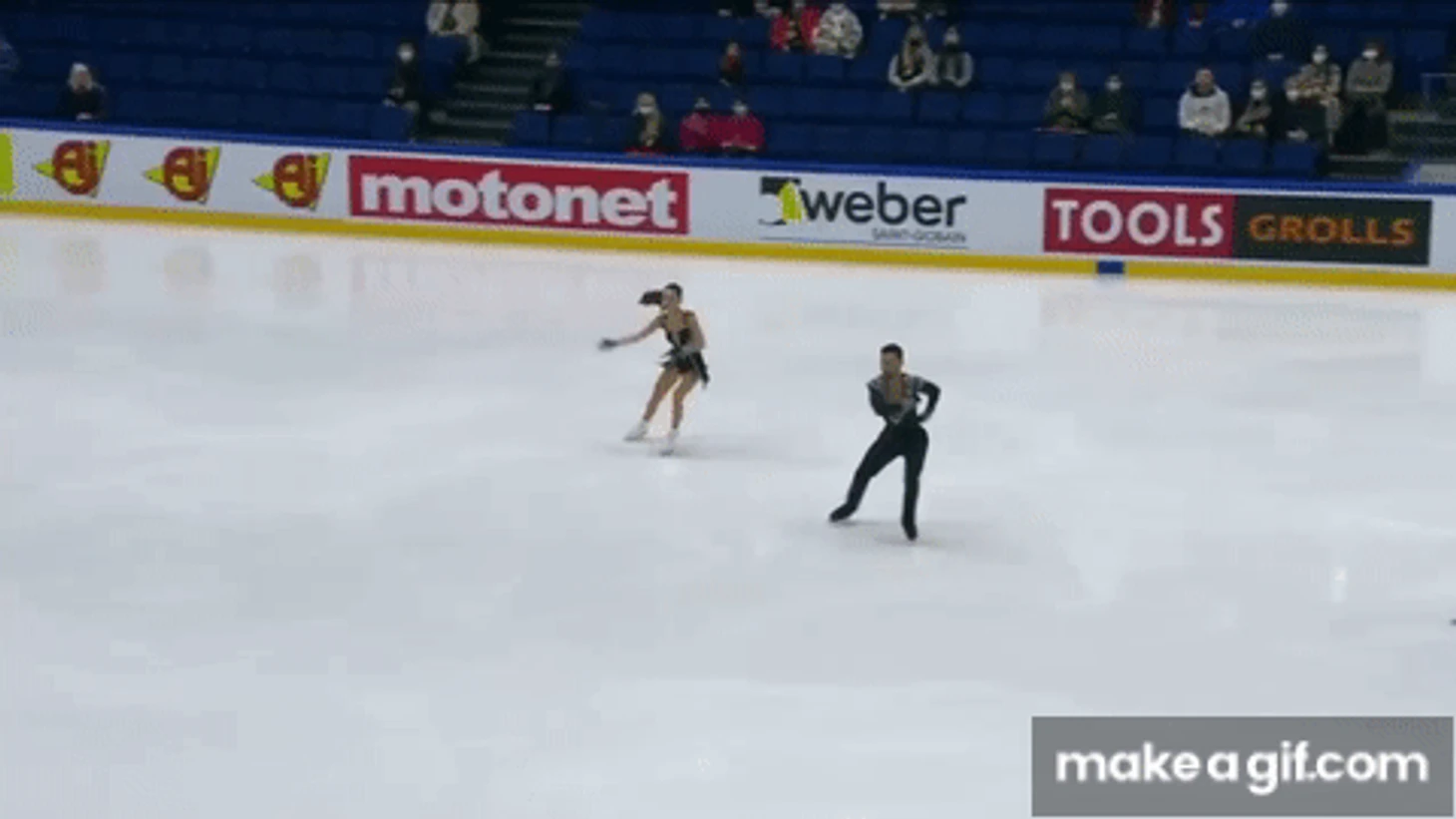 В совершенно иных (страто)сферах проходила дуэль лидеров — Мэдисон Чок - Эвана Бейтса и Габриэлы Пападакис - Гийома Сизерона. В программе Мэди у Эвана под песни Билли Айлиш меня сразу поразило обилие темпов и ритмов, постоянных замедлений и ускорений. Хореографически все эти стыки были обыграны хорошо — особенно в начале твиззлов и на тех же твиззлах в самом начале параллельной дорожки шагов.