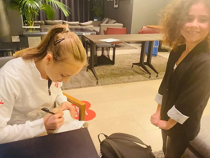 Тут к Губановой подошла девочка за автографом – Настя отвлекалась, чтобы расписаться.