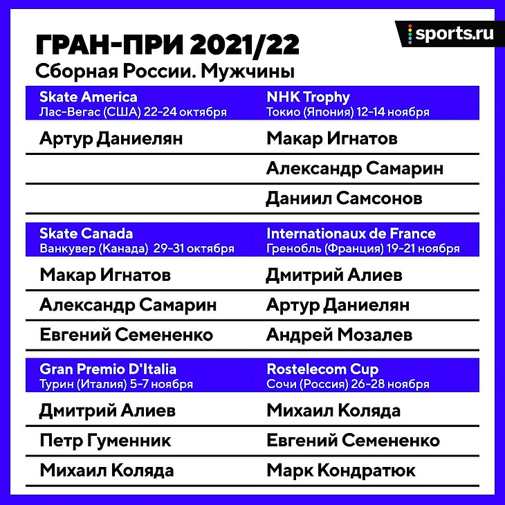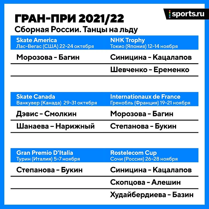Расписание Гран-при по фигурному катанию в сезоне-2021/22