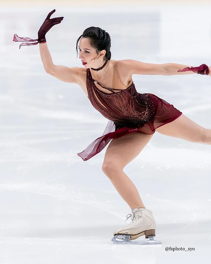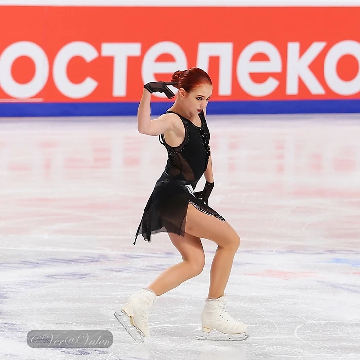 Пока не удалось оценить костюмы Александры. Судя по отсутствию тонны хаотично налепленных страз, 200 км переплетенных веревок и грязного градиента на ее платьях, выступала Трусова в тренировочных костюмах. С замиранием сердца ждем что же подготовила для русской ракеты Олечка Рябенко. Особенно интересует костюм к ПП. Как-никак, Сашенька предстанет в образе Круэллы — настоящей иконы стиля по сюжету одноименного фильма, на саундтреки которого поставлена новая произвольная программа нашей супер-квадистки. Выбор композиций, кстати, огонь. Тут Даниил Маркович не оплошал. Постановка смотрится свежо, ярко и очень подходит спортсменке. Ну, и с КП для нее тоже постарались. Можно сказать, что в этом сезоне у нее одна из лучших новых коротких программ, если сравнивать с программами других фигуристок этой группы.
