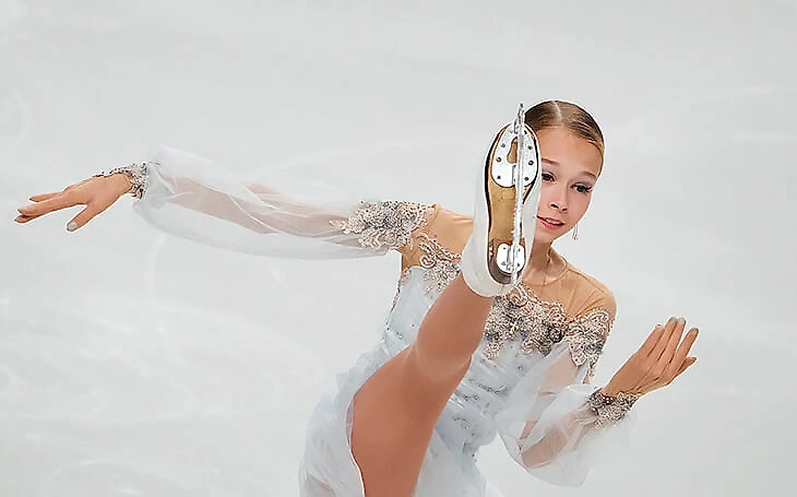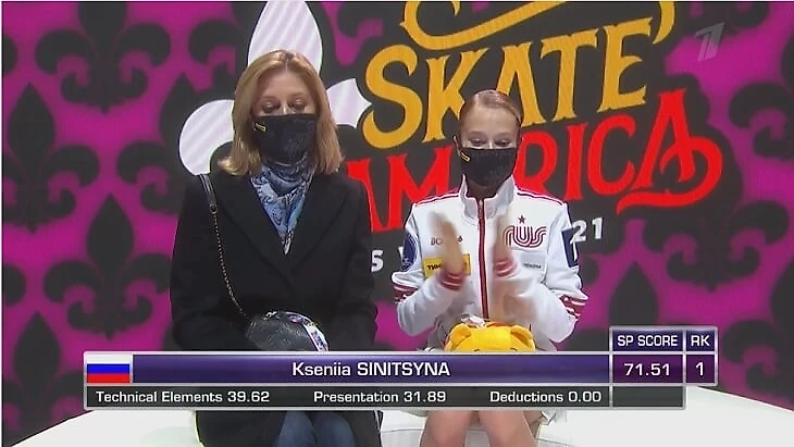 17-летняя Ксения Синицына идет третьей после Александры Трусовой и Дарьи Усачевой: это дебют среди взрослых, она пропустила 1,5 года из-за травмы и эффектно вернулась.