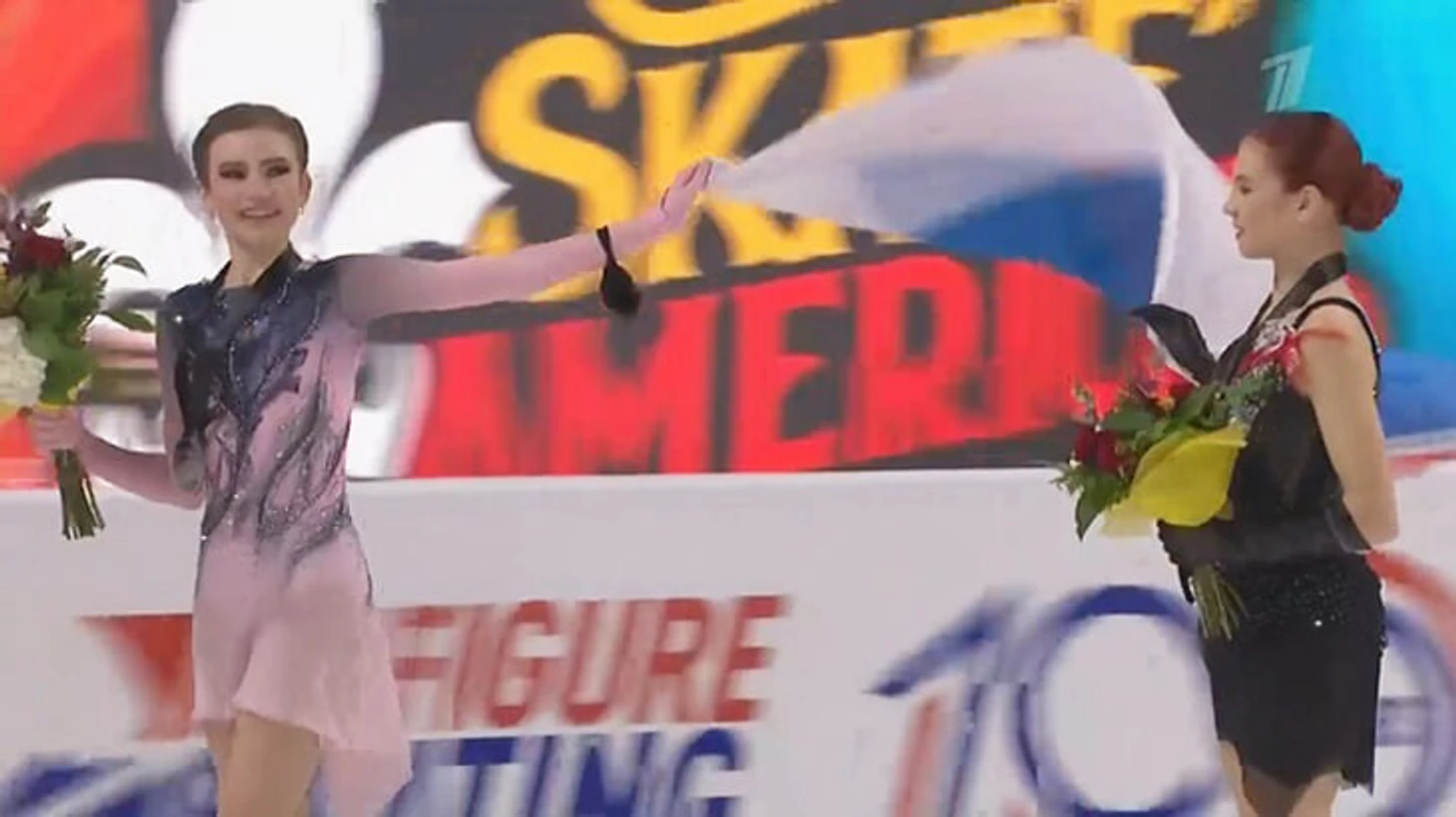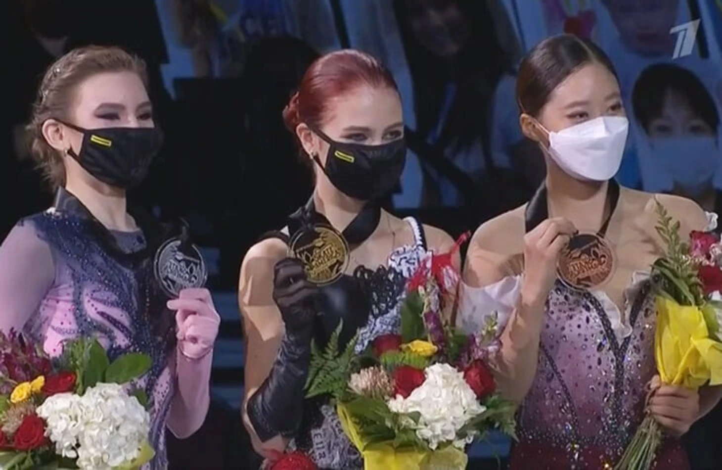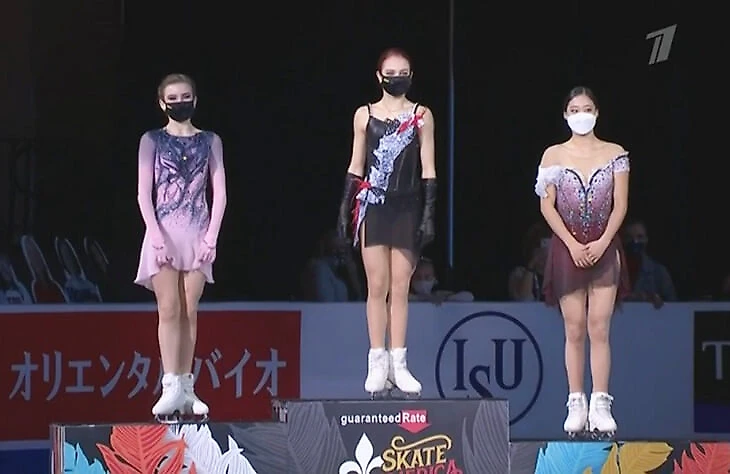 На пьедестале Трусова и Усачева пели гимн России (да, на Гран-при он не запрещен, так что тут без музыки Чайковского) – это было видно, несмотря на маски.