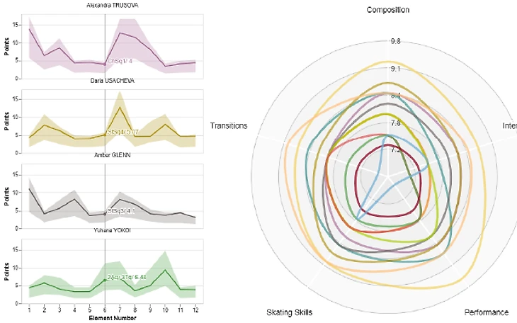 - оценки компонентов в детализации по их составляющим в виде радиальной диаграммы – отчётливо и в сравнении с остальными видны паттерны профессионализма каждого участника.