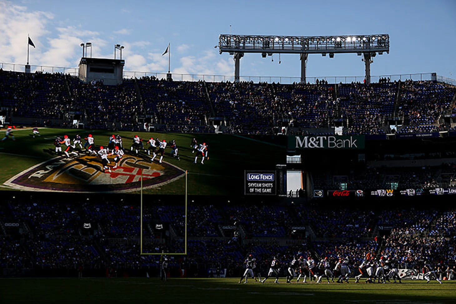 24 октября. Гигантский экран, логотипы спонсоров: на игре в Балтиморе явно комфортнее, чем в Марселе.