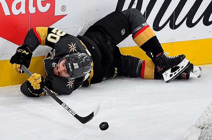 12 октября. Чендлер Стивенсон из «Вегаса» выгибается в погоне за шайбой.