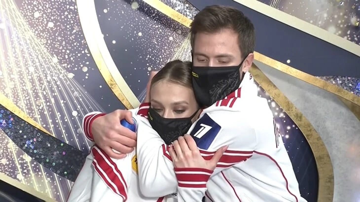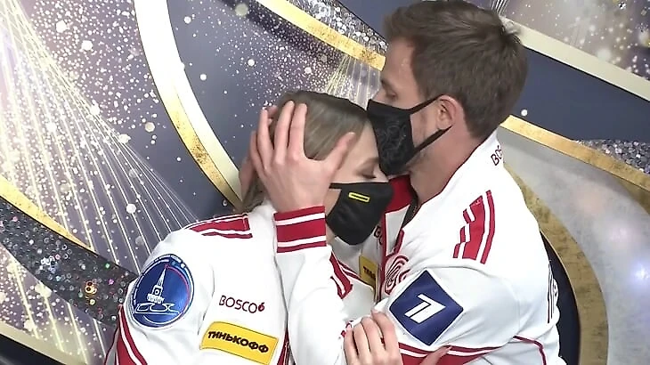 Какая же нежность у Синициной и Кацалапова! Объятия, поцелуи даже через маску, сердечки болельщикам ❤️