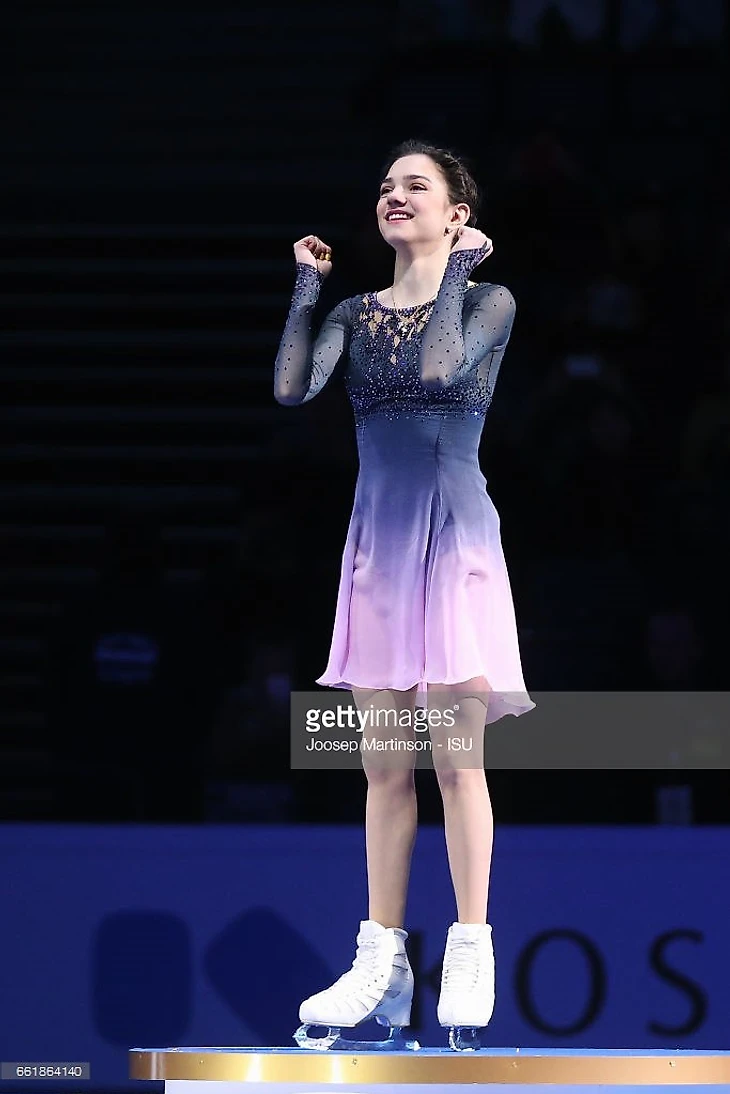 Первую серьезную победу в своей спортивной карьере Женя одержала в 15 лет, став чемпионкой мира по фигурному катанию среди юниоров.