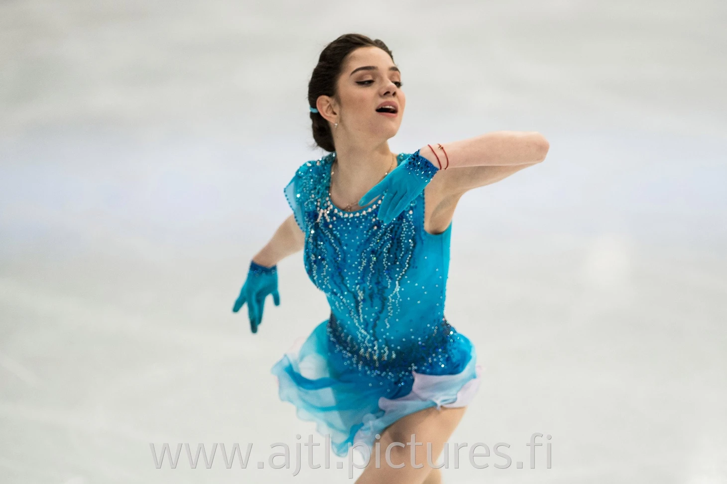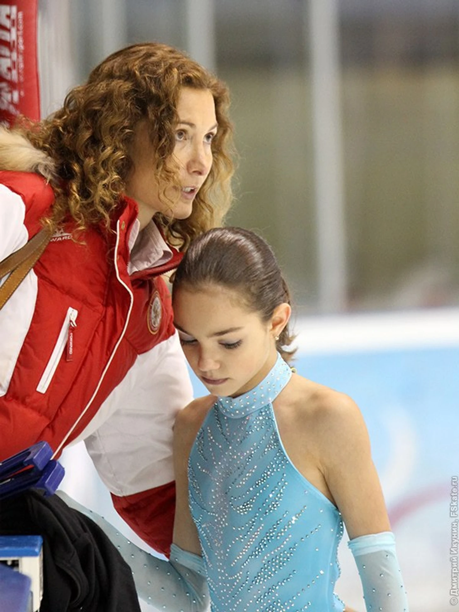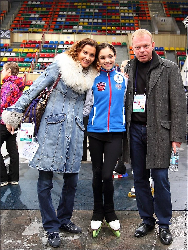 Женя встала на коньки в три с половиной года и прежде, чем попасть в группу Этери Георгиевны Тутберидзе, первые шаги в фигурном катании делала под руководством Елены Владимировны Проскуриной, Любови Витальевны Яковлевой и Елены Анатольевны Селивановой.