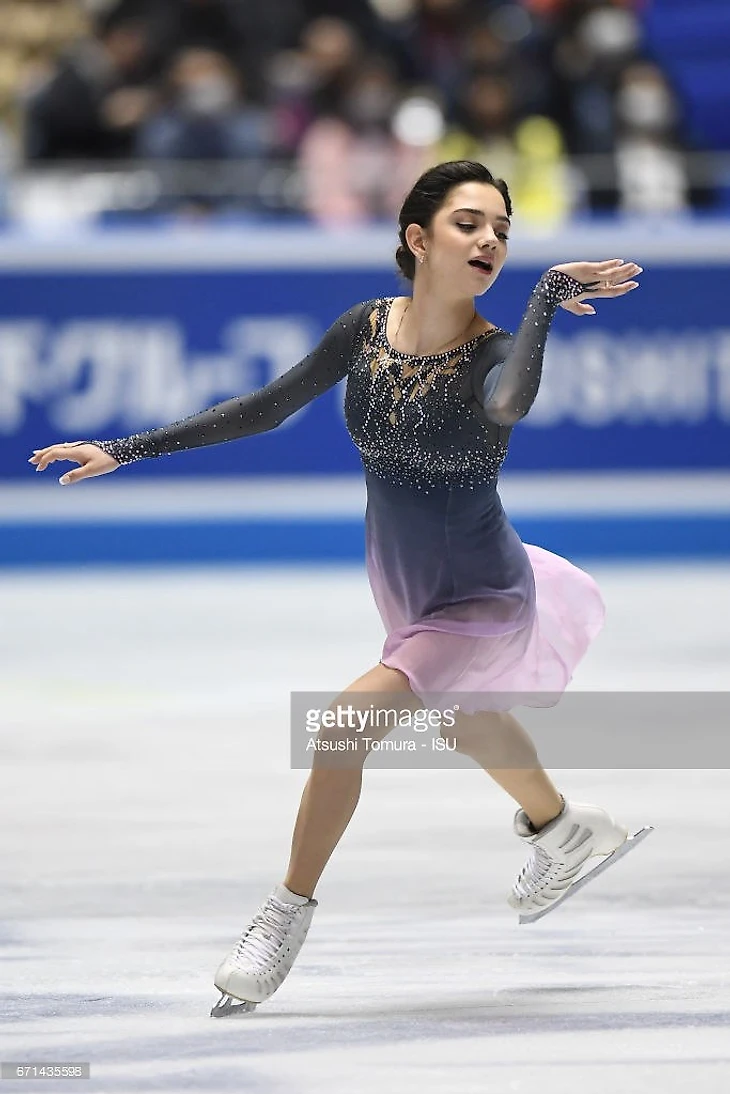 Женя вышла во взрослые в сезоне 2015/2016 в 15 лет и сразу же одержала победу на своем первом этапе Гран-При в Америке, опередив фаворита соревнований - американку Грейси Голд.