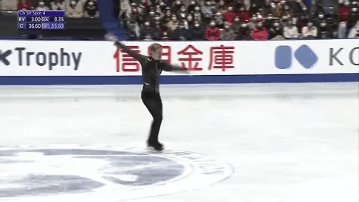 Ох, Макар. Ваш перформанс в пп можно охарактеризовать одной фразой – «Увидеть Токио и умереть». Точнее «Прыгнуть четыре квада и помереть». Квады – это конечно хорошо, но вы же после них просто останавливаетесь/падаете на колени/крутите вращение на первый уровень/хорошо если не падаете с него/отмучиваете дорожку/катаете в стиле лишь бы дожить до финала/все вышеперечисленное сразу. Короче, надо делать выводы и что-то с этим делать.