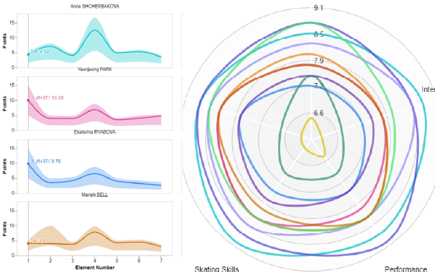 - оценки компонентов в детализации по их составляющим в виде радиальной диаграммы – отчётливо и в сравнении с остальными видны паттерны профессионализма каждого участника.