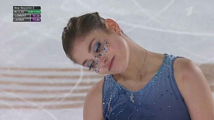 Казалось, после серьезной ошибки Алена выключится – так уже бывало в этом сезоне, когда она падала духом и теряла в презентации. Далее по заявке шел каскад тройной лутц – двойной тулуп, а Косторная исполнила сольный прыжок. Но было видно, что она далека от паники – собралась на остальные элементы, все каскады перенесла во вторую половину и получила надбавки.