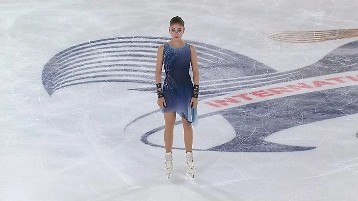Алена пока не выходила на произвольную в одном и том же: сначала было бирюзово-черное с рукавами на контрольных прокатах, затем платье с голубым воротом на турнире в Финляндии. После старта в Эспоо «Зиму» Антонио Вивальди поменяли на Lovely Билли Айлиш – костюм, понятно, тоже. В Канаде Косторная выступала в темно-синем платье на бретельках и кожаных перчатках.