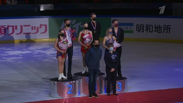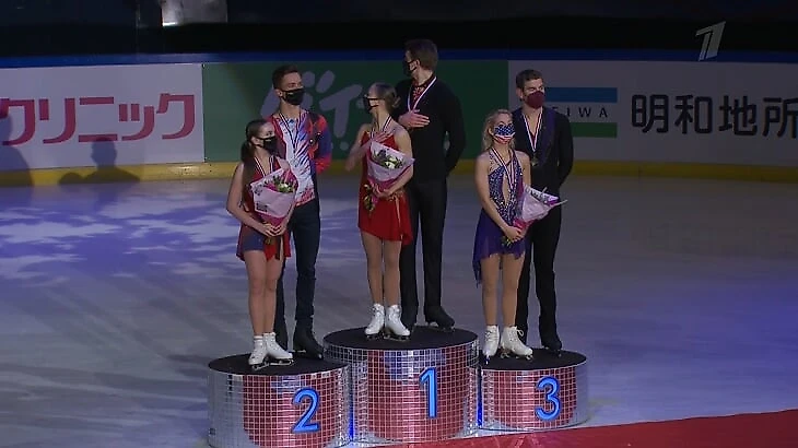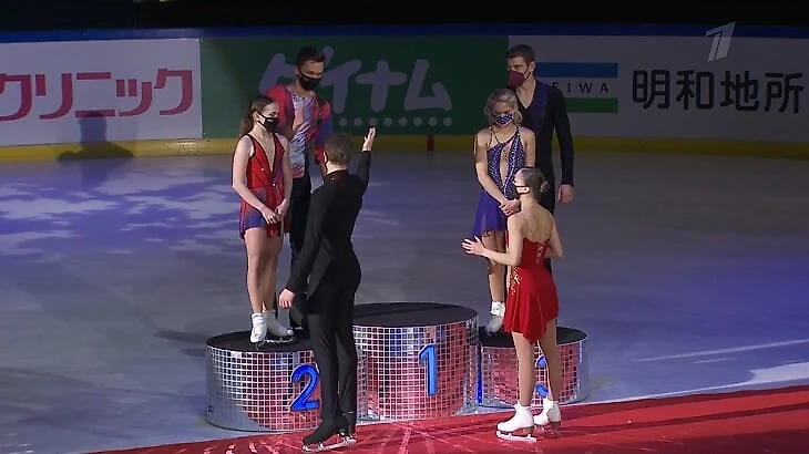 Пожалуй, это награждение вышло самым веселым. Сначала Дмитрий Козловский и Михаил Назарычев долго решали – отбить кулачки или пожать друг другу руки в честь успешного выступления. Бойкова и Козловский победили, а Артемьева и Назарычев завоевали серебро.