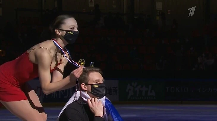 Мартен Фуркад ворвался на награждение фигуристов – вручил букет Бойковой и Козловскому. Да, это реальность!