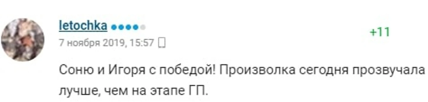 Как жаль, что юзер Леточка забыла, как "нарисовали" +11 баллов за один прокат ритм-танца другой российской паре каких-то два года назад.