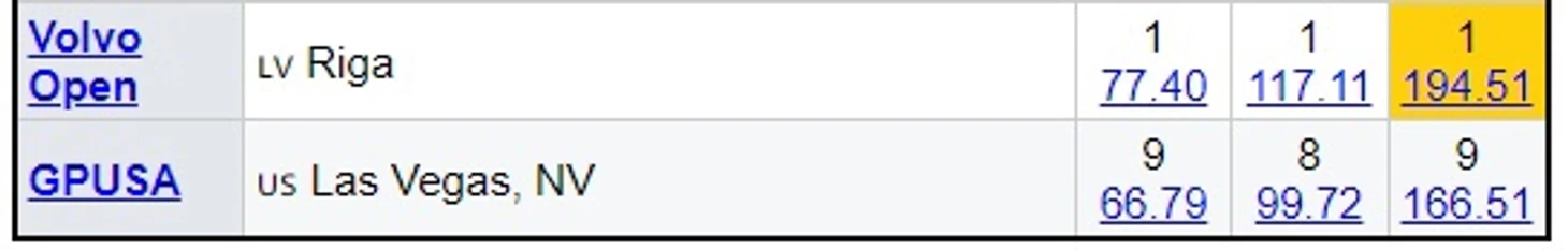Прирост составил 28 баллов, притом что в США не было видимых взгляду обычного зрителя технических ошибок. Просто в Риге очень сильно поднялась техническая база (особенно в ритм-танце за две части паттерна), ГОЕ и компоненты.
