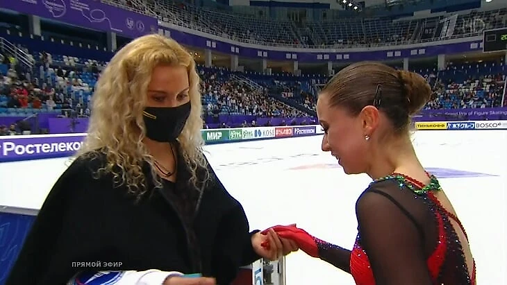 И похвала Тутберидзе – Этери мягко похлопала Камилу по коленке.
