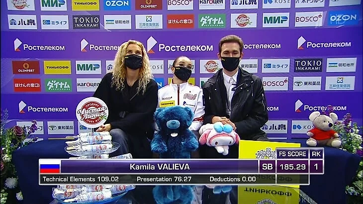 В КиКе Валиева радостно ждала оценок: с таким прокатом – только мировой рекорд. Даже два – в произвольной и по сумме.