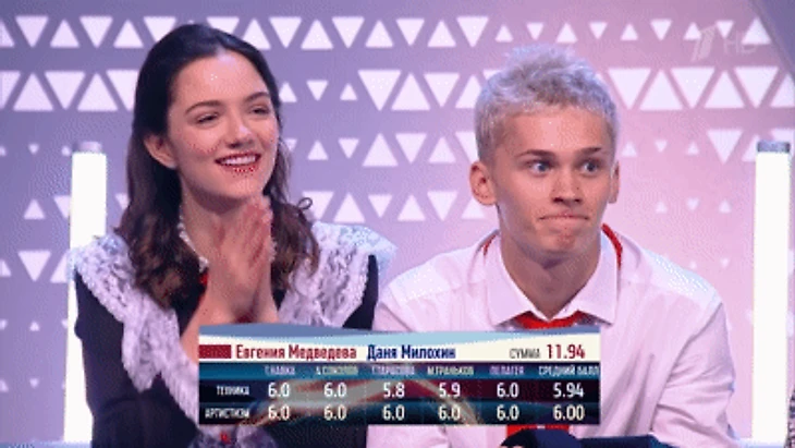 Татьяна Тарасова: «Говорить нечего. Кроме трех слов «Я вас люблю», сказать нечего. Вы нас в себя влюбили. Такие музыкальные, едут в поддержки. Причем не первым элементом. Смотреть страшно! Но я вижу, что я вижу, что он ее правильно поднял. И что неплохо спускает. Когда вы выходите, настроение сразу поднимается. Состояние, которое я испытала, напомнило время, когда я училась в школе. Легкое состояние. Только работайте над техникой»