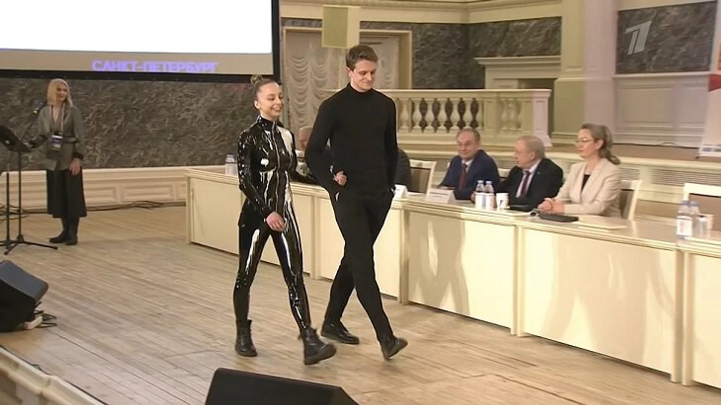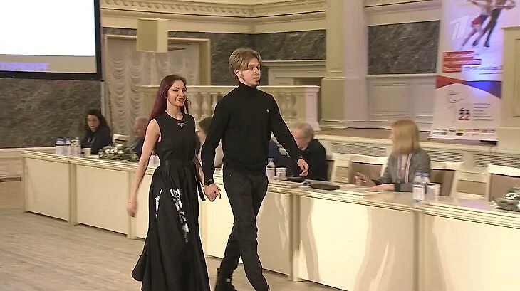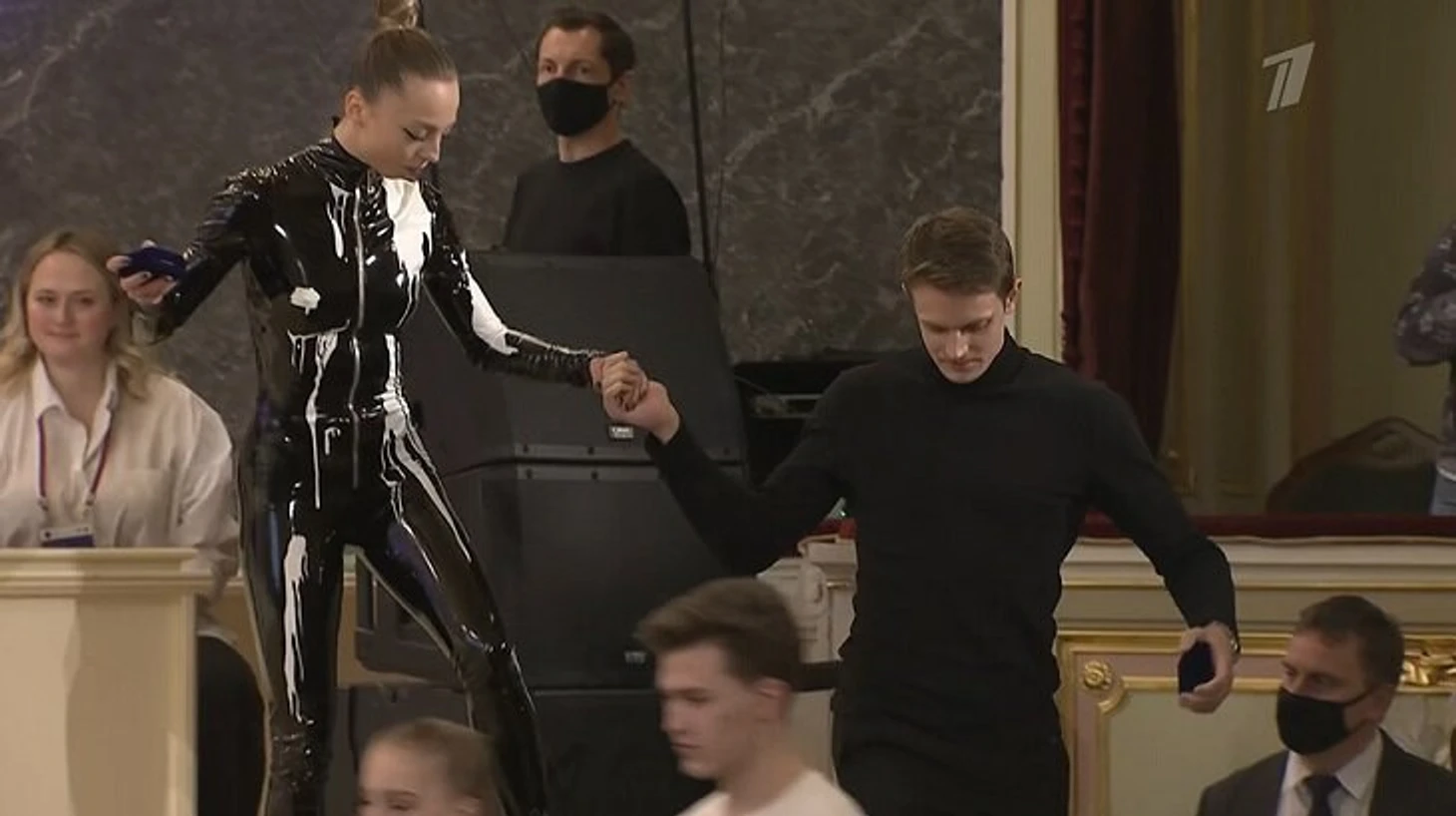 Наряды фигуристов на жеребьевке чемпионата России: Бойкова – в латексном комбинезоне, Туктамышева – в черной коже, Дэвис – в платье Prada