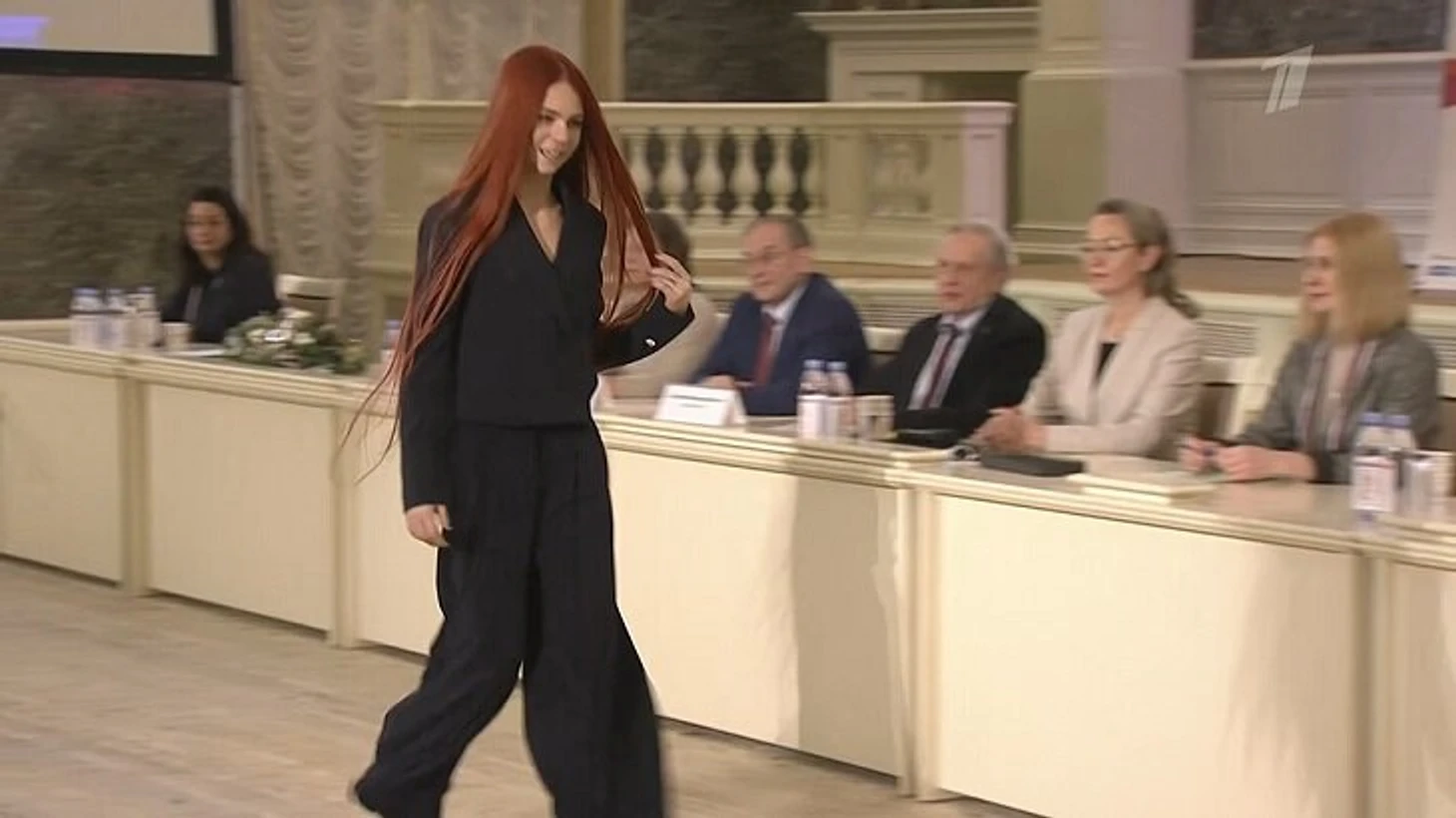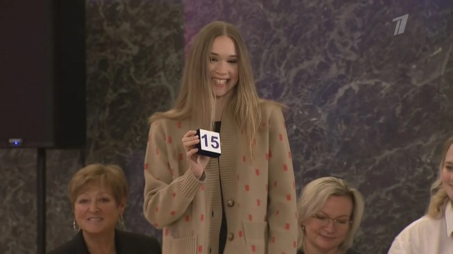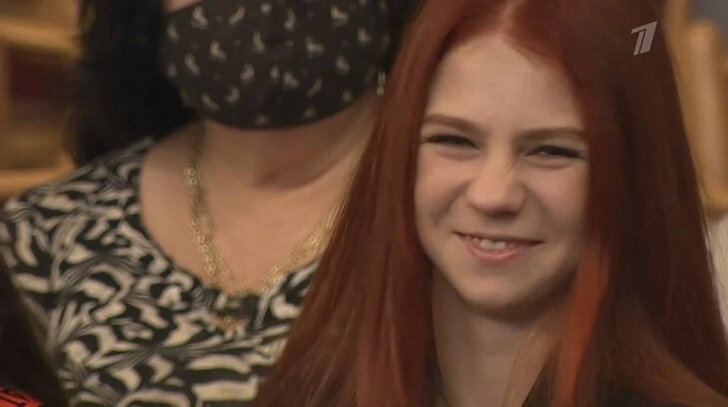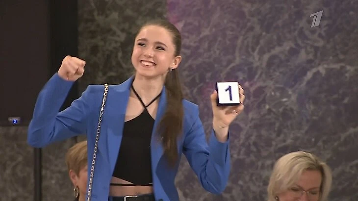 Камила Валиева надела синий брючный костюм и черный топ. А главное – вытянула номер один!