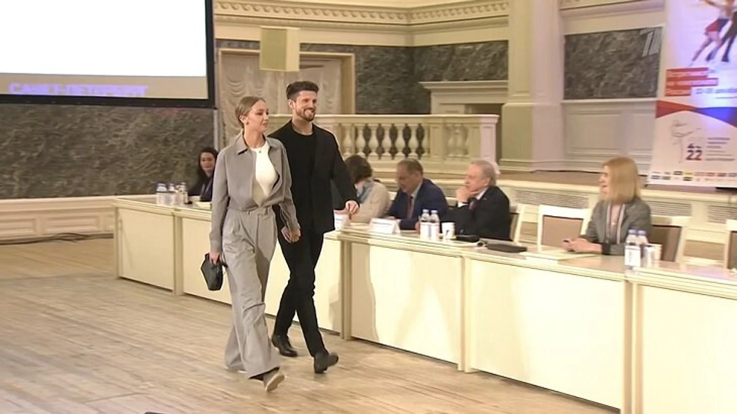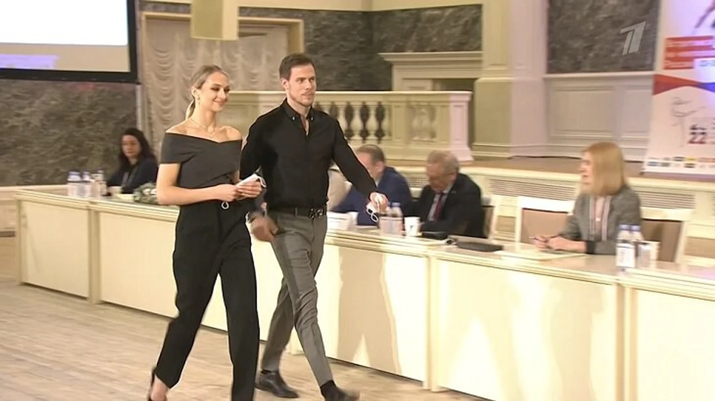 А вот чемпионы мира Анастасия Мишина и Александр Галлямов выбрали классические образы: маленькое (очень маленькое) черное платье и строгий костюм.