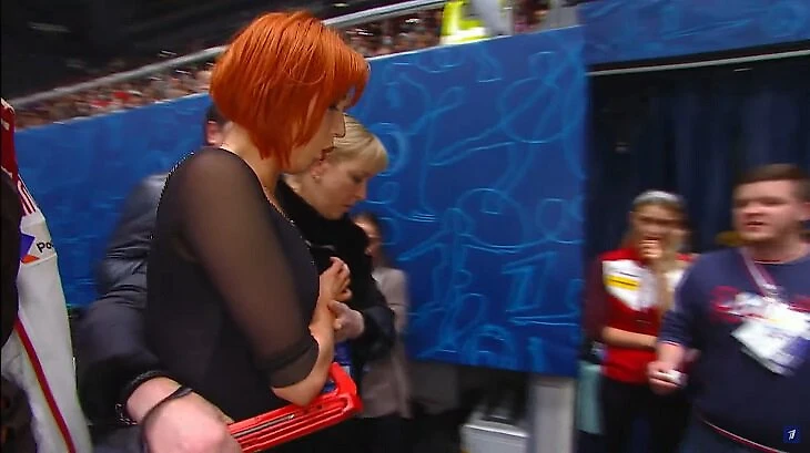 Несмотря на очевидные трудности, Загорски докатала, хотя даже безобидные элементы давались сложно – приходилось опираться рукой, чтобы встать с колена.