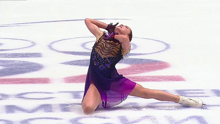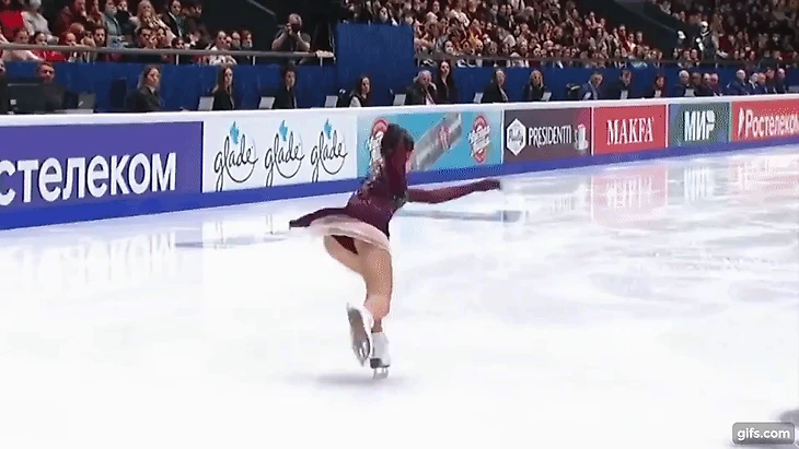 И на фоне всего этого праздника жизни Анна Щербакова падает с единственного, явно недокрученного на более, чем четверть флипа, который сам по себе, как мы уже писали – насмешка над исполнением квадов из-за гигантского преротейшена и неясного ребра.