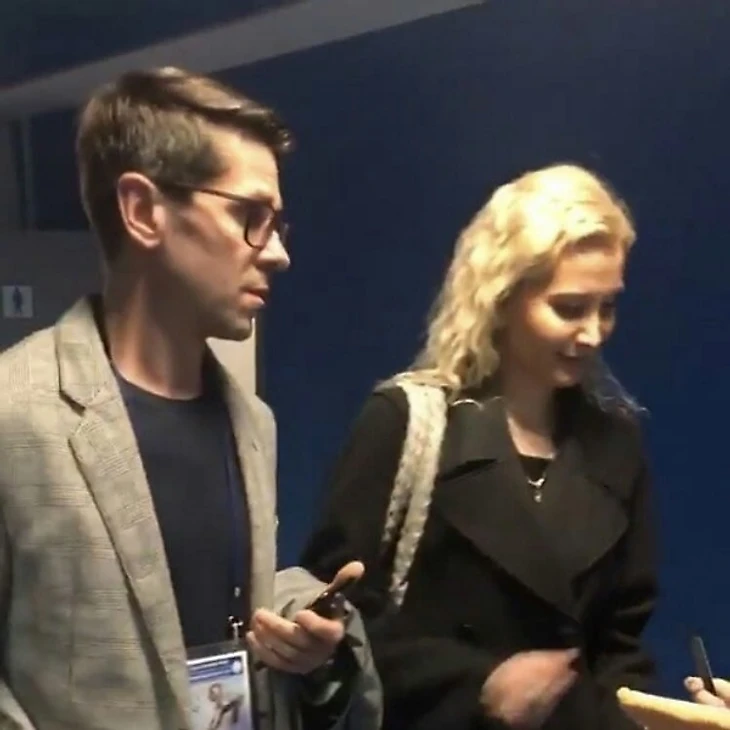 Затем с инсайдом выступает жена Евгения Плющенко Яна Рудковская, которая рассказала журналистам, что жалобу на ошибку подал Эдуард Аксенов, замначальника «Хрустального» и по совместительству выдающийся артист, выступавший в прошлом году в шоу у Татьяны Навки в образе Алины Загитовой.