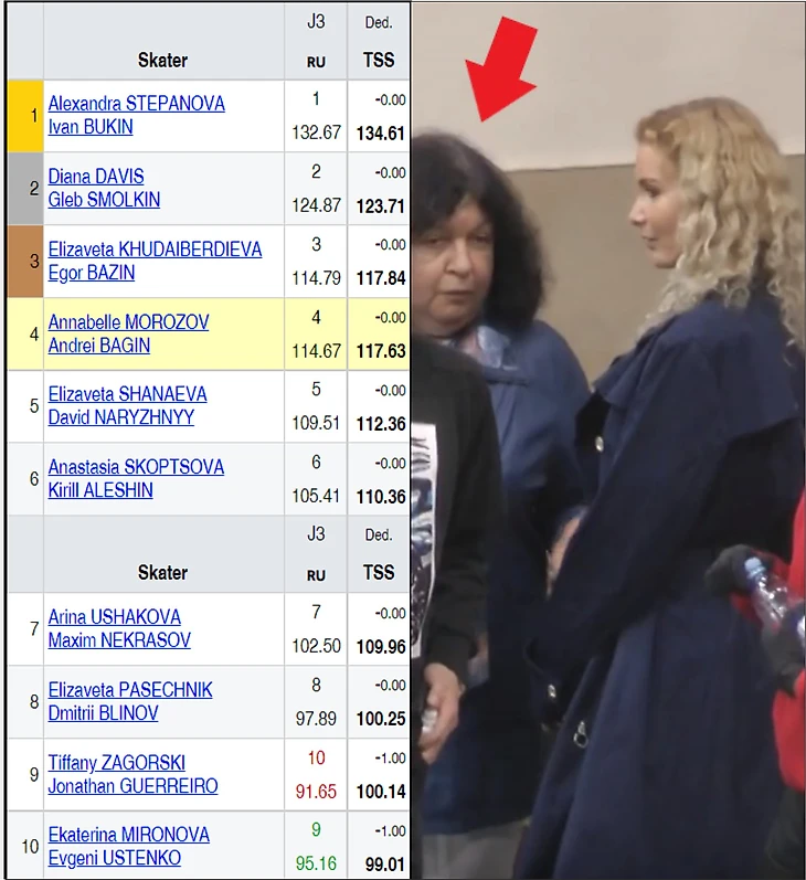 Судя по всему, Аксенов является приближенным к Тутберидзе человеком, их часто видят вместе на трибунах, в интернете много совместных фотографий. Важно напомнить, что Аксенов – чиновник, и вряд ли он, стоя за бортиком, с секундомером замерял, на сколько секунд опоздала Муравьева. Это могла сделать только Тутберидзе. В недавнем интервью «Первому каналу» главный тренер «Хрустального» высокомерно и нелицеприятно высказалась о Евгении Плющенко как тренере в такой манере, мол: «А он есть вообще?» Ответка от судьбы не заставила себя ждать: девочка-ноунейм, как ее прозвали журналисты, в короткой обошла действующую чемпионку мира. Но видимо, стерпеть это гордой грузинской княжне было невмоготу – идти самой к судьям и подавать жалобу было бы слишком палевно, выручает Аксенов. Никакого другого внятного объяснения в голову не приходит. Кстати, информацию Яны затем полностью подтвердил и хореограф «Хрустального» Алексей Железняков, и заодно со словами «Давайте будем объективными» набросил в сторону уровня катания Сони.
