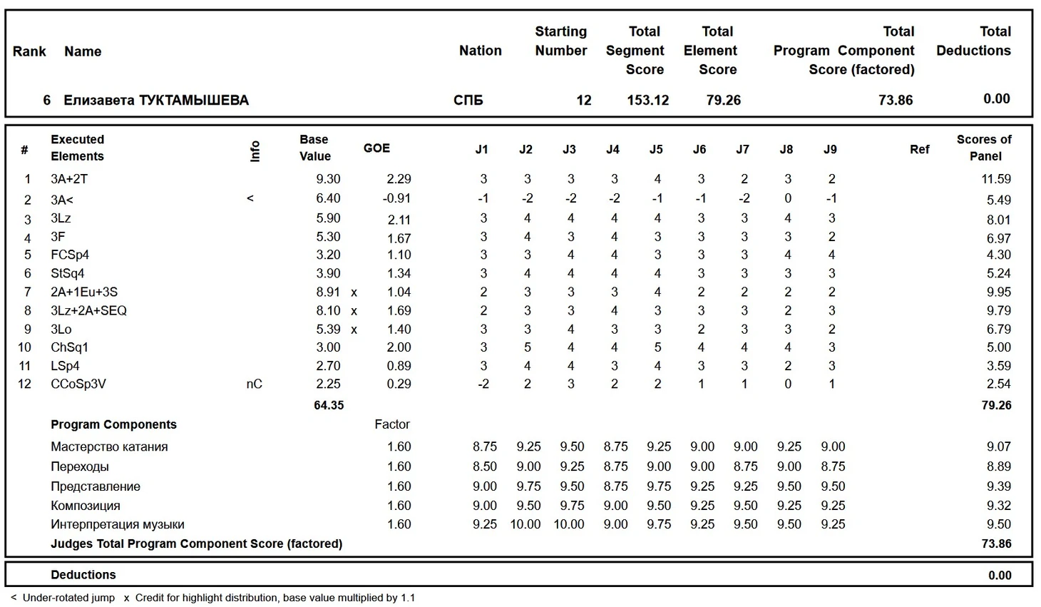 Казалось бы, тут должен быть паритет. Ведь Аня и Лиза обе обладают одним из наивысших титулов ФК - Чемпионка Мира. Но при этом Щербакова еще и трехкратная Чемпионка России, а Туктамышевой этот титул покорился лишь единожды - в далеком 2013 году. Поэтому победителем в этом раунде опять выходит Анна Щербакова.