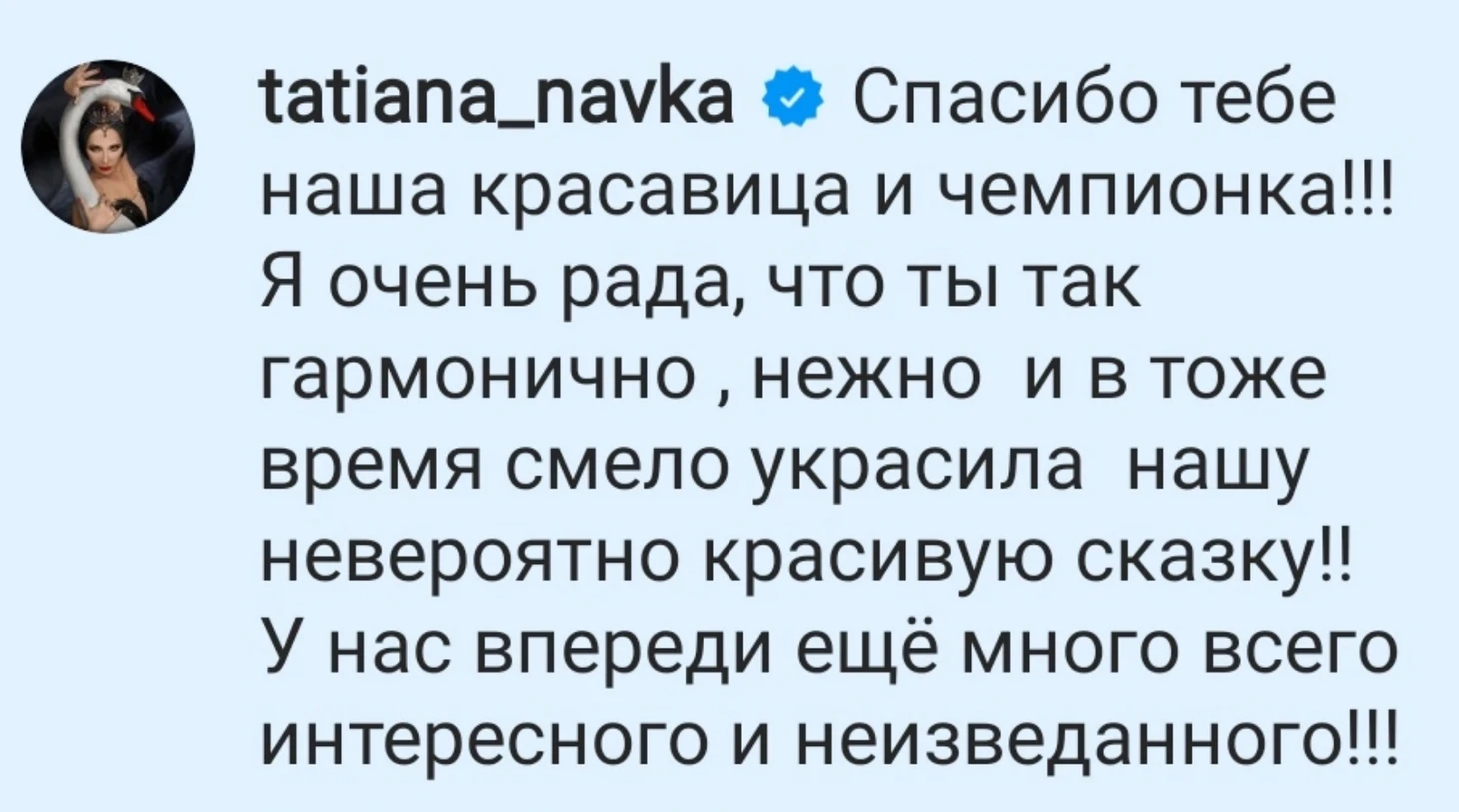 Ответ Татьяны Навки Алине (пример, как нужно ценить людей):