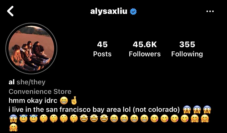К слову, в ноябре, после официального подтверждения переезда из Сан-Франциско Лью сменила описание в Инстаграме на «я живу в Сан-Франциско лол (не в Колорадо)», добавив кучу странных смайликов. Если вы не понимаете нынешних подростков: это что-то типа сарказма. Нетрудно понять, что жить в Колорадо, куда её перевёз тренироваться отец, ей не нравится.