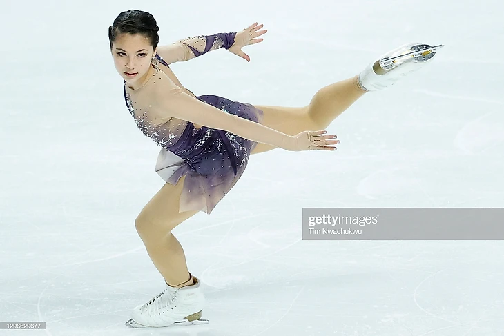 На обоих этапах Гран-при в сезоне 2021/22 Алиса шла на тройной аксель в своих программах. К сожалению, ни разу прыжок не был выполнен в докрут, но то, что она идёт на риск и жертвует чистотой программы – это уже похвально. Тем более, даже недокрученный триксель на одну галку может принести баллов больше, чем чисто исполненный дупель.