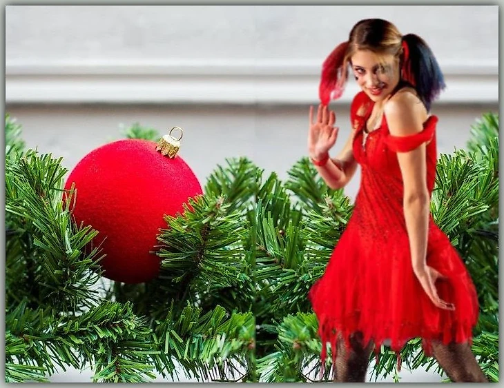 Ещё один коллаж с Алиной и новогодним шариком напомнил бал из фильма "Лабиринт" с Боуи (собственно, из-за шарика)))