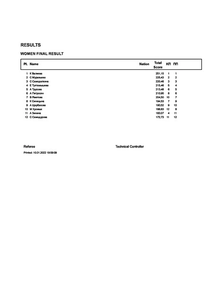 Чемпионат России по фигурному катанию-2022, женское катание: настоящие оценки
