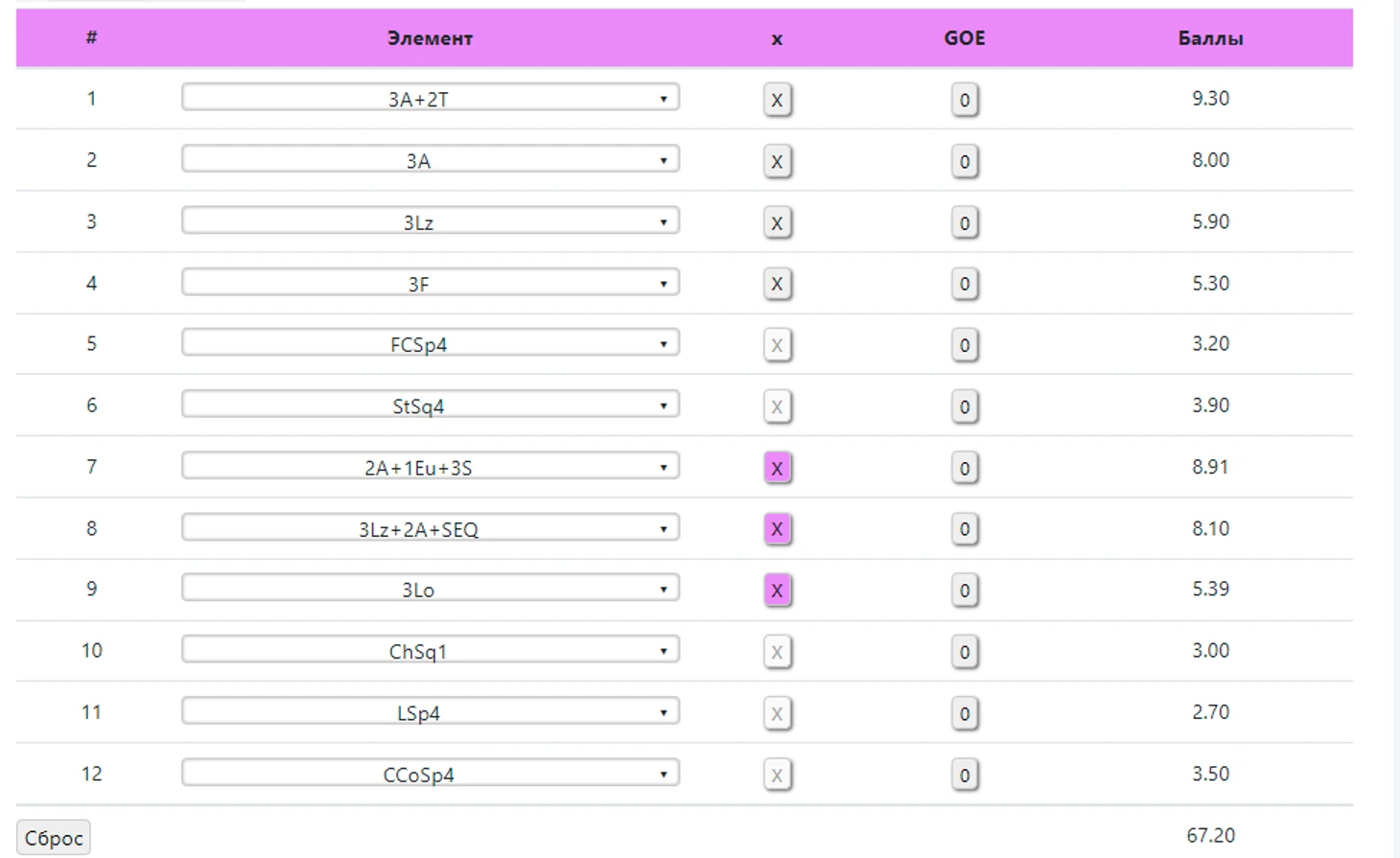 Вторая таблица Лизы Туктамышевой с двумя тройными акселями.