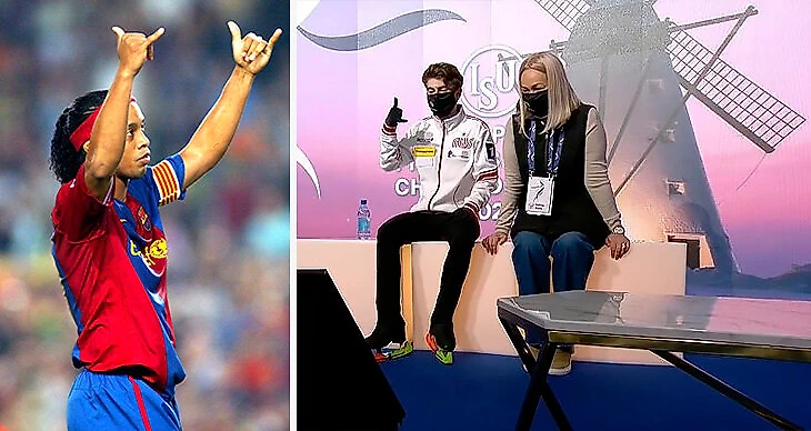 В кисс-энд-край тоже хватало эмоций: Кондратюк приветствовал зрителей и обменивался с тренером впечатлениями. Потом показал победный жест, который закрепился в спорте благодаря легендарному бразильскому футболисту Роналдиньо – выставил большой палец и мизинец.