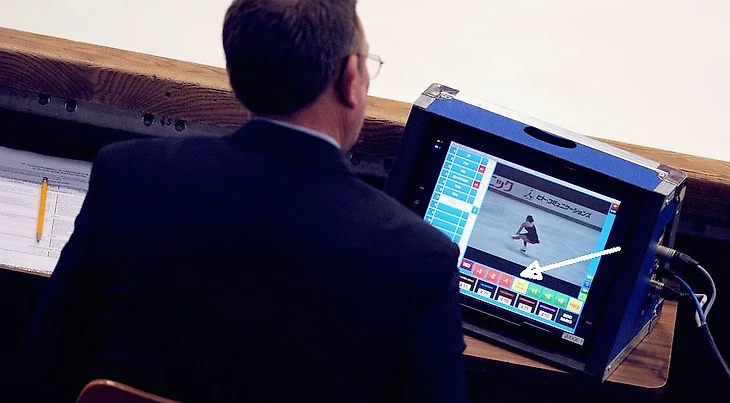 На фото пример с прежней системы судейства, но принцип тот же. Перед судьей 11 кнопок: слева 5 красных кнопок от -5 до -1, посередине желтая кнопка 0, справа - 5 зеленых кнопок от +1 до +5. Как вы думаете, насколько легко ошибиться и вместо крайней правой зеленой кнопки +5 нажать крайнюю левую красную кнопку -5 ?