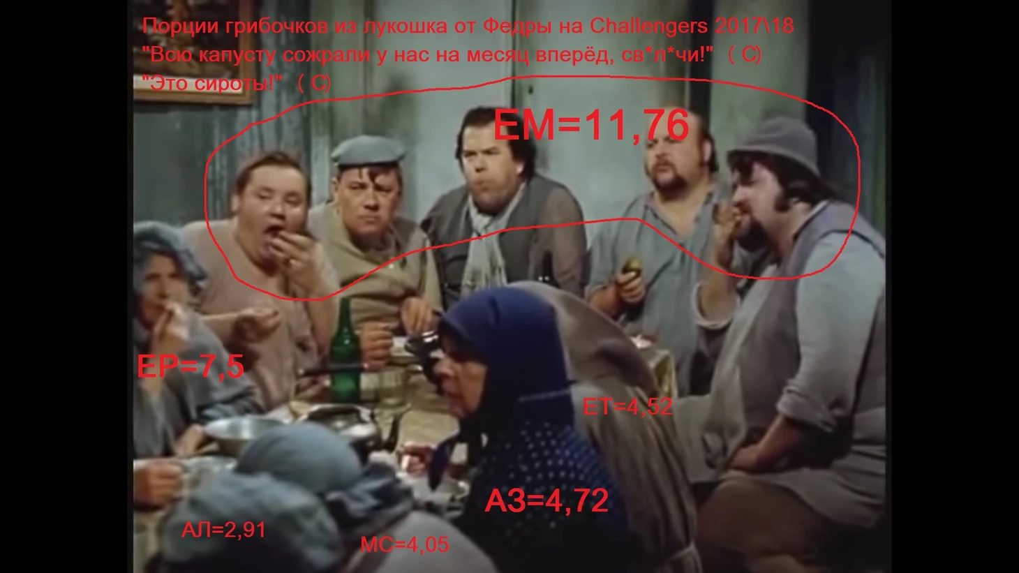 Порции грибочков из лукошка от Федры на Challengers 2017/18 "Всю капусту сожрали у нас на месяц вперед, св*л*очи!" (с) Это сироты! (с)