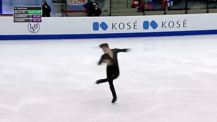 Не может бросить свои сальховы и Мориси Квителашвили. Они так прочно с ним срослись, что адаптировали под себя любой прыг. Генетики бы написали, что в его случае, сальхов оказался доминантным геном. А я все жду, когда у техпанели отберут бумажку с подсказками и им придется определять контент Мориса на глаз.