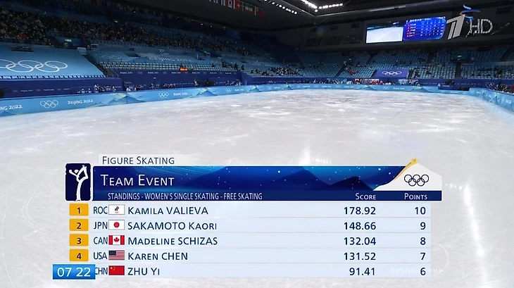 Доброе олимпийское утро, болельщики! После выступления с произвольной программой Мишиной/Галлямова в спортивных парах и Синициной/Кацалапова в танцах на льду нас заведомо ставят на первое место в командном турнире. На льду вращаются и прыгают как мячики миниатюрные Карен Чен, Мадлен Скизас, Каори Сакамото, но все ждут одну единственную-Камилу Валиеву. Она сегодня представит свою программу «Болеро» на музыку Мориса Равеля.