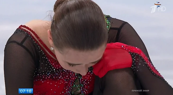«Вот они, олимпийские чемпионы!», - радуется комментатор Александр Гришин, когда ТШТ, Камила и другие спортсмены сборной сидят в kiss-and-cry. С этим поспорить нельзя!