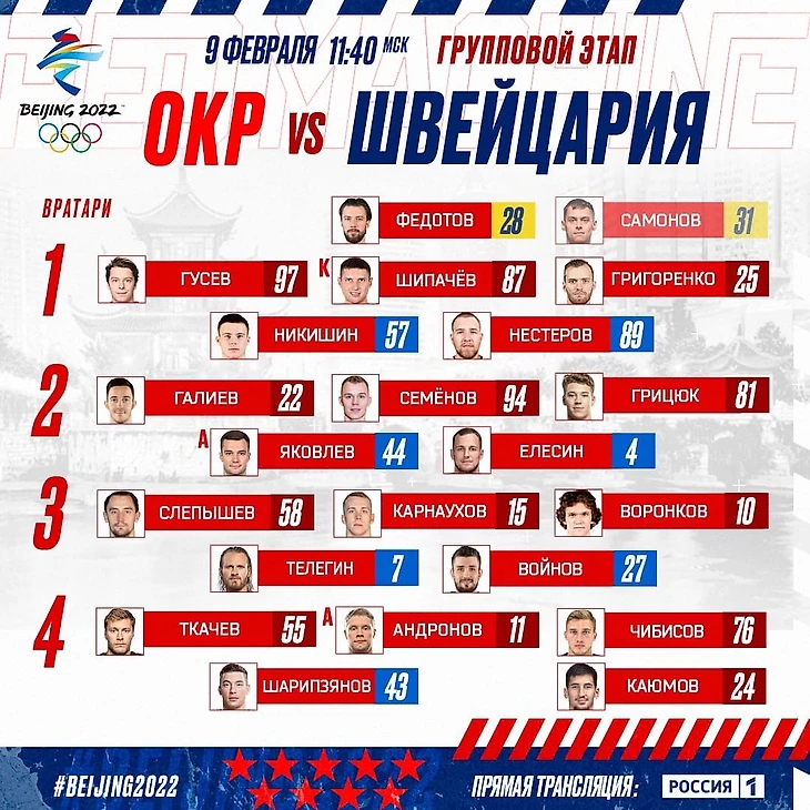 В субботу, 12 февраля, в 7:10 – женский четвертьфинал Россия vs Швейцария, ему наконец назначили день и время.