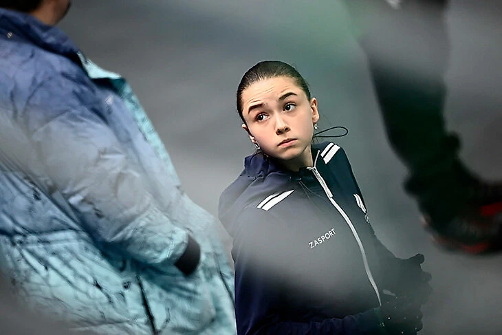 Вместе с Валиевой на тренировку вышли чемпионка мира Анна Щербакова (слева) и призер Евро Александра Трусова (осталась вне кадра).