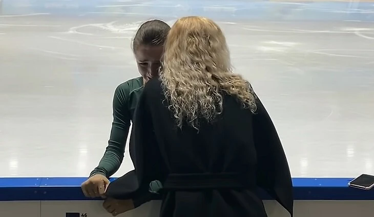 Фото дня: Валиева плачет на плече у Тутберидзе во время тренировки