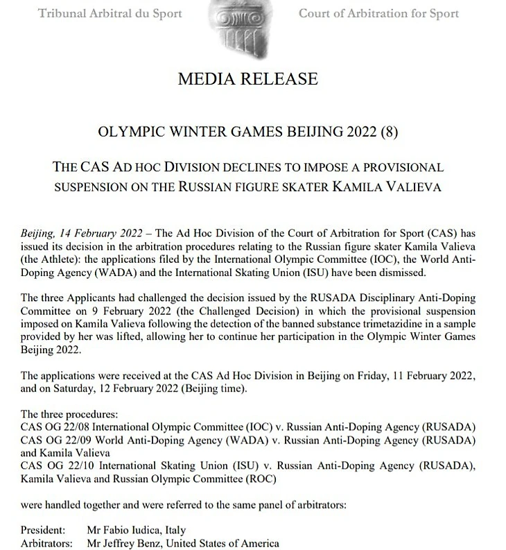 Генеральный секретарь CAS Матье Риб, правда, после заседания звучал не так уверенно, когда анонсировал сроки заявления: